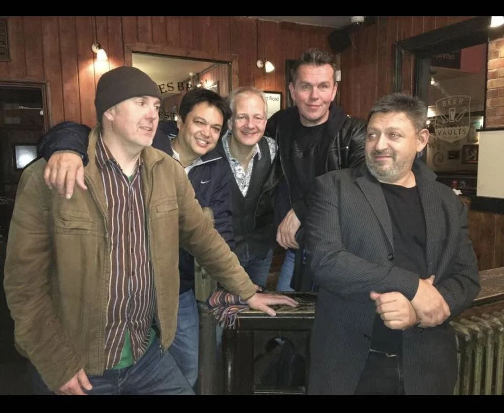 "Roosters Gumbo is a cobbled-together lineup that formed one evening. We enjoyed playing together so much that we occasionally get together, but not very often. It consists of Steve Roux and Tim Payne on guitars, Ray Dury on keyboards, Reg Winslade on bass, and Mike Jessop on drums. We've never had a rehearsal, so what’s played is never the same twice. A mix of blues, funky, swingy tracks that we don’t remember the titles of… we have fun, and generally, so does the audience."